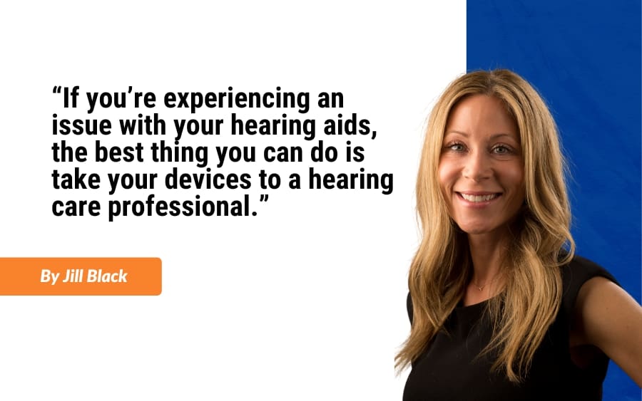 If you’re experiencing an issue with your hearing aids, the best thing you can do is take your devices to a hearing care professional.